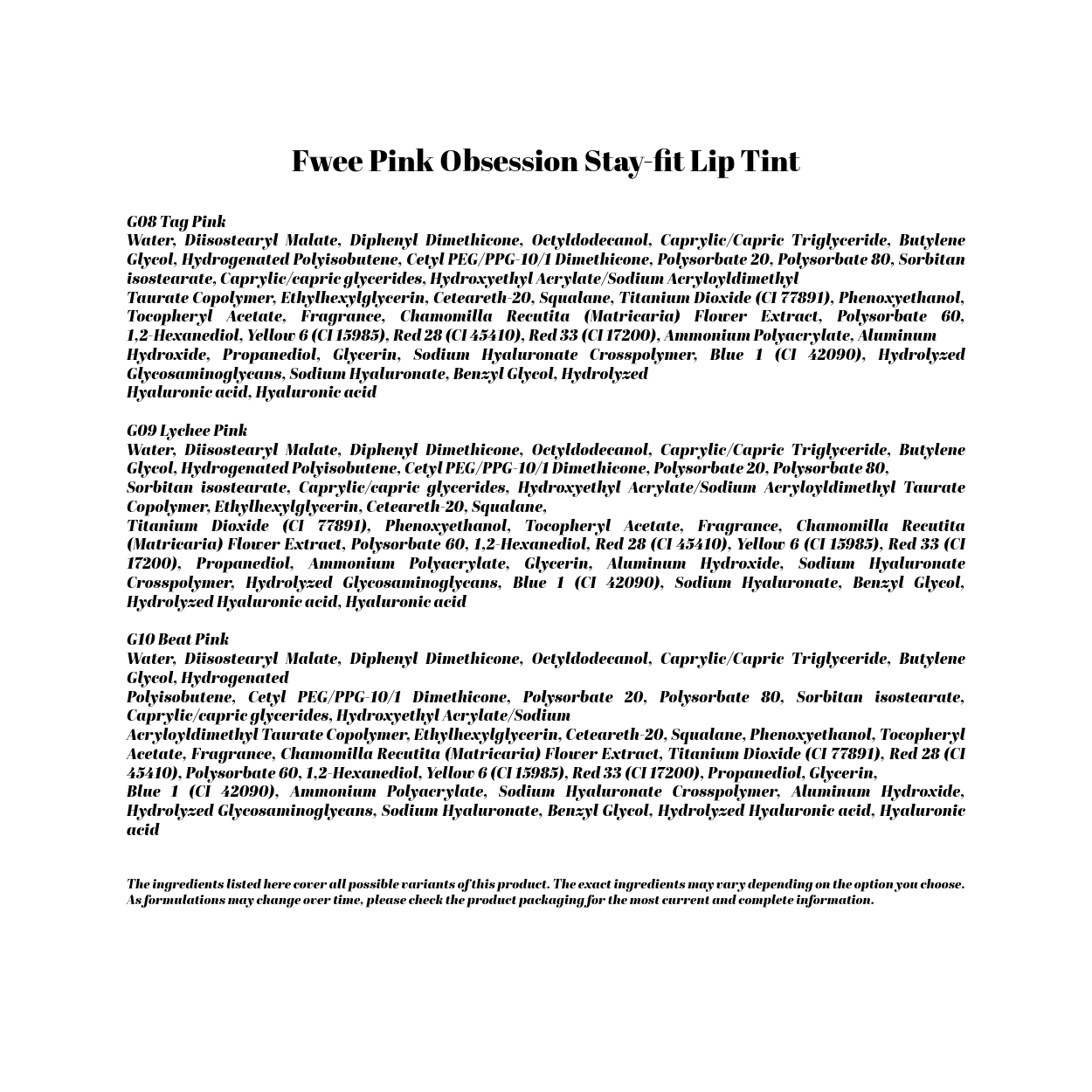Fwee Pink Obsession Stay-fit Lip Tint (Semi-Glow)- 10 COLOURS